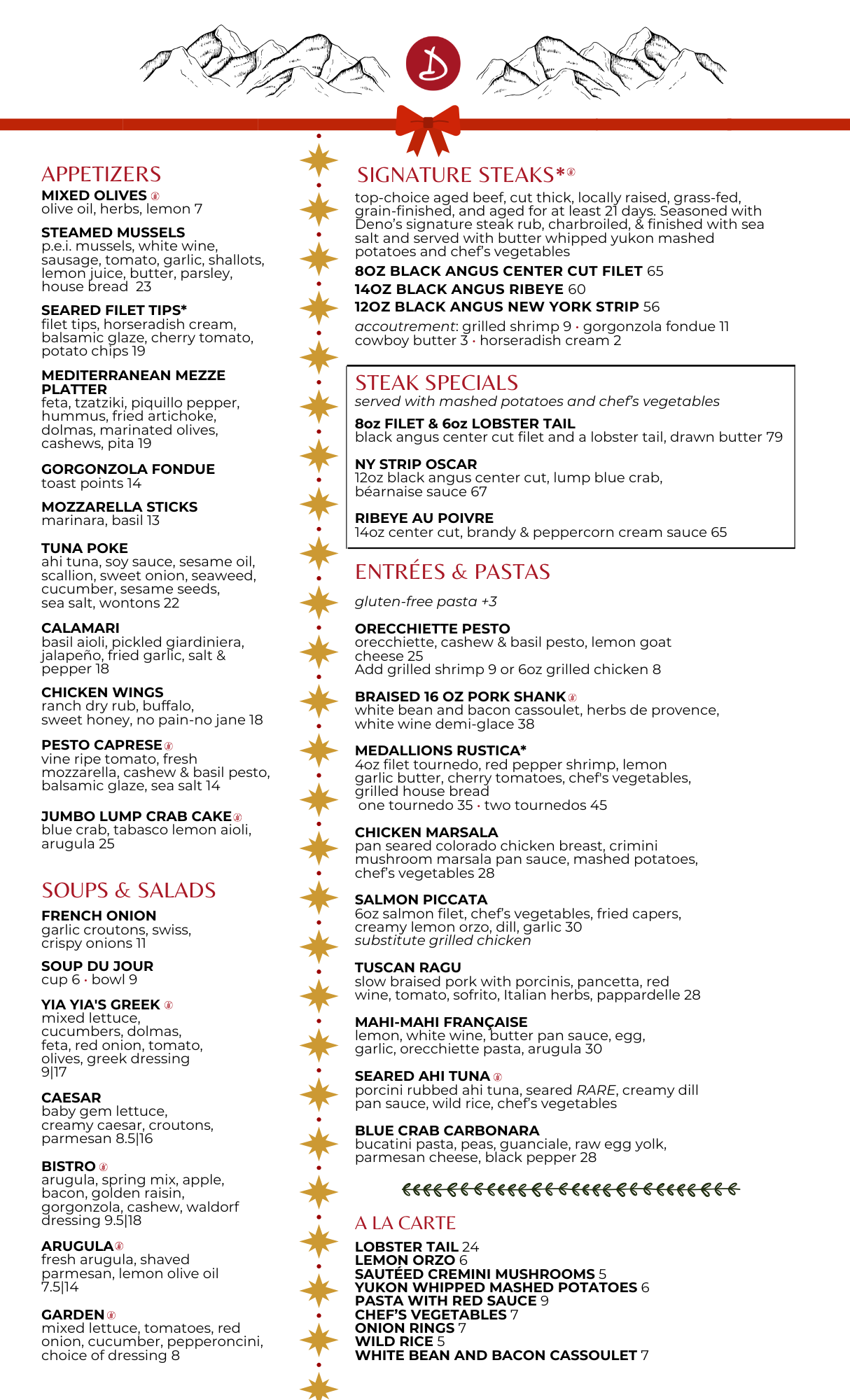 Open since 1976, a Winter Park, CO traditions. A mediteranean Steak House, serving fine wines, a full bar and award winning Happy Hour